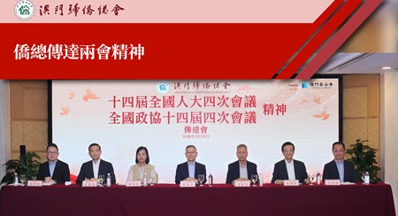 澳門歸僑總會於三月廿四日晚上假萬豪軒酒家舉行全國兩會精神傳達會。全國政協常委、僑總會長劉雅煌表示,當前國家戰略頂層設計涵蓋多領域,澳門應主動找準定位,在國家發展大局中實現自身更好發展。