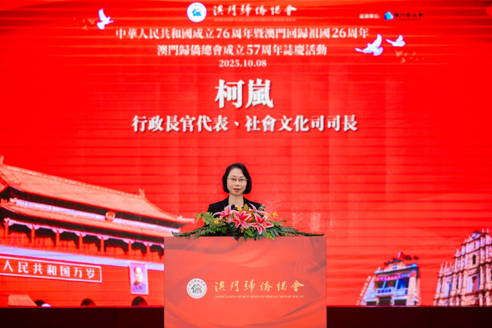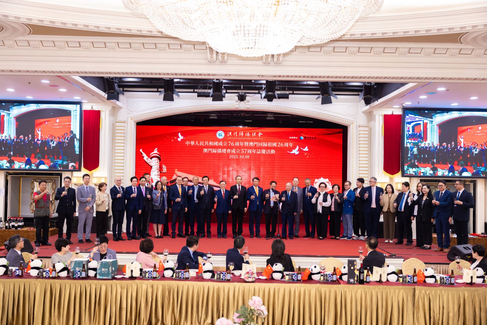 澳門歸僑總會舉行慶祝中華人民共和國成立七十六周年、澳門回歸祖國二十六周年暨僑總成立五十七周年聯歡晚宴,筵開五十餘席。全國政協副主席何厚鏵,外交部駐澳特派員公署特派員劉顯法,行政長官代表、社會文化司司長柯嵐等出席,各界嘉賓同申慶祝,場面熱鬧。