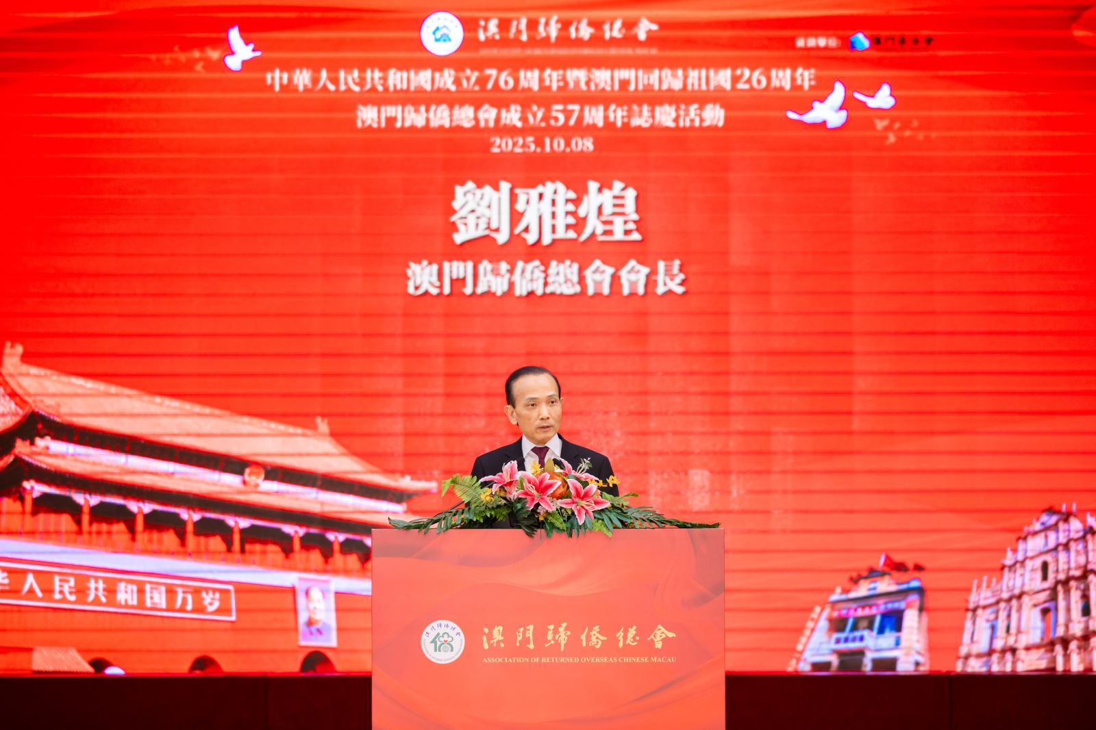 澳門歸僑總會會長劉雅煌表示,歸僑總會成立五十七年來,團結廣大歸僑,見證並參與了澳門“一國兩制”的成功實踐。在國家新時代征程中,中國創造了經濟快速發展與社會長期穩定的奇跡,澳門亦在中央支持下展現出良政善治的新氣象,四大產業佈局與“澳門平台+橫琴空間”模式正釋放潛力。