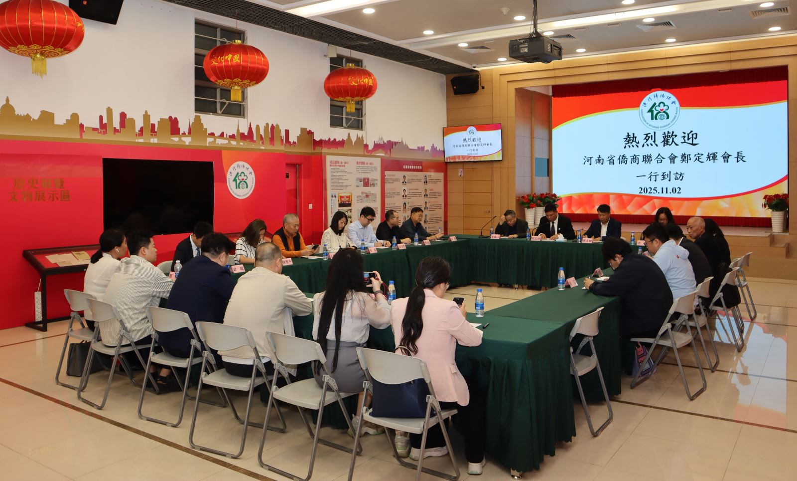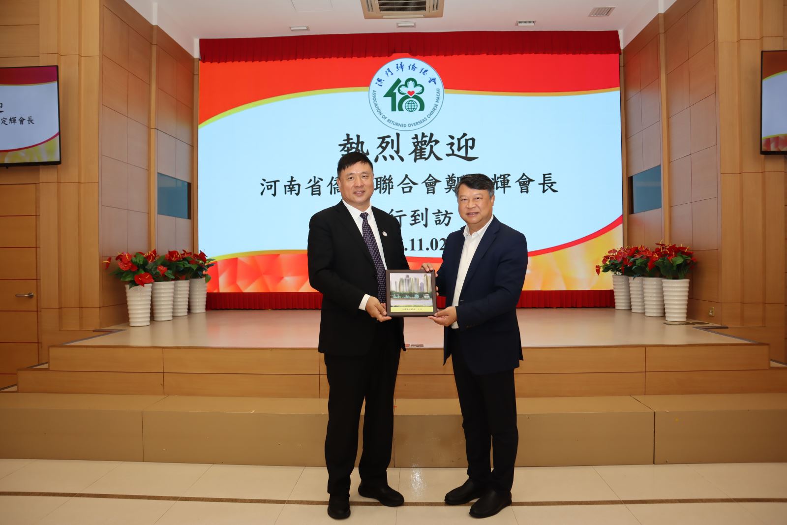 為深化豫澳兩地僑界交流合作,河南省僑商聯合會鄭定輝會長一行於11月2日拜訪澳門歸僑總會,獲本會理事長畢志健,副會長廖麗瓊、張華等領導熱情接待。是次座談會由本會副會長洪華主持。