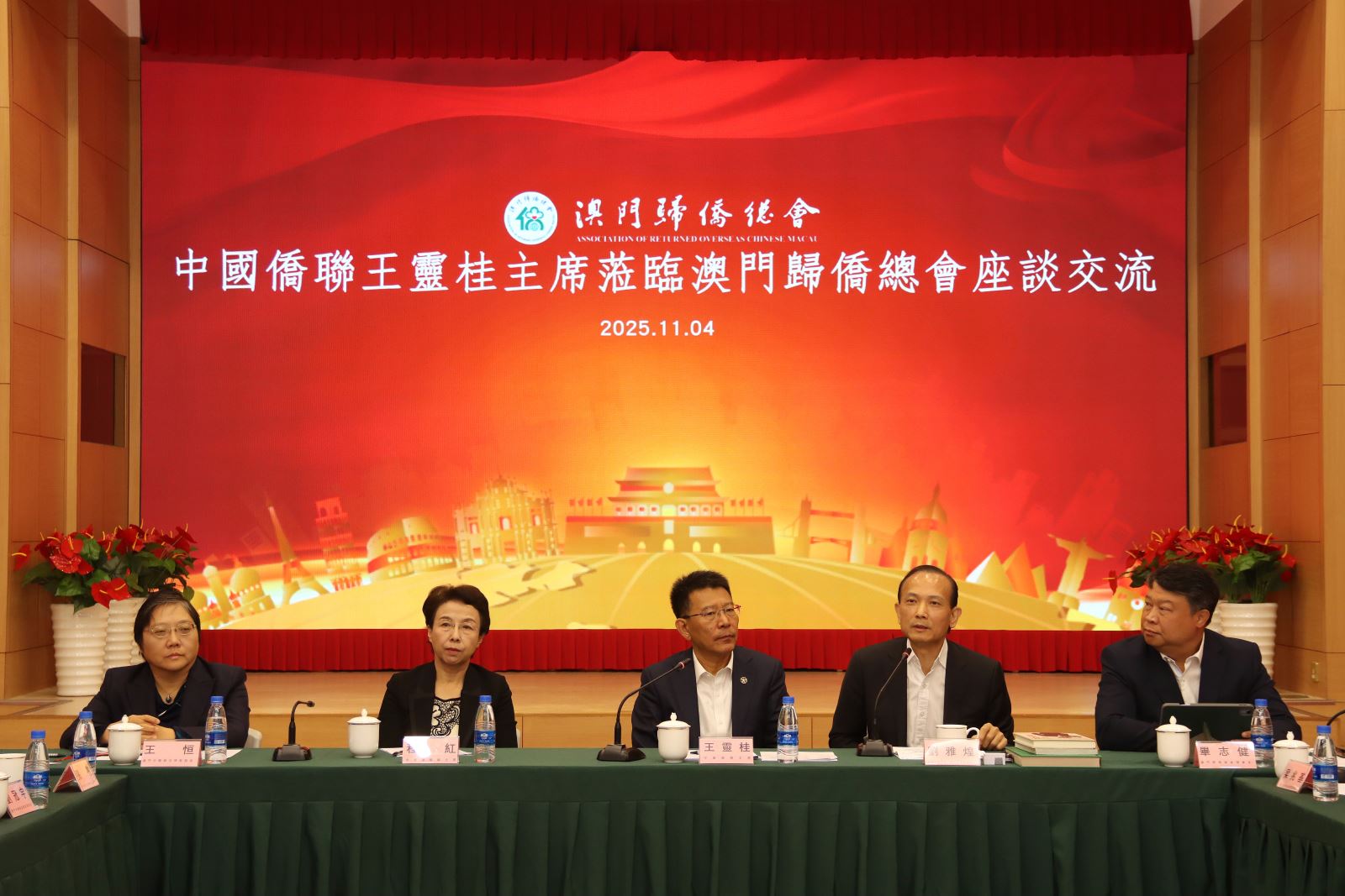 中國僑聯主席王靈桂、副主席程紅一行於11月4日到訪澳門歸僑總會,與僑總代表座談交流,深入宣介中共二十屆四中全會精神。