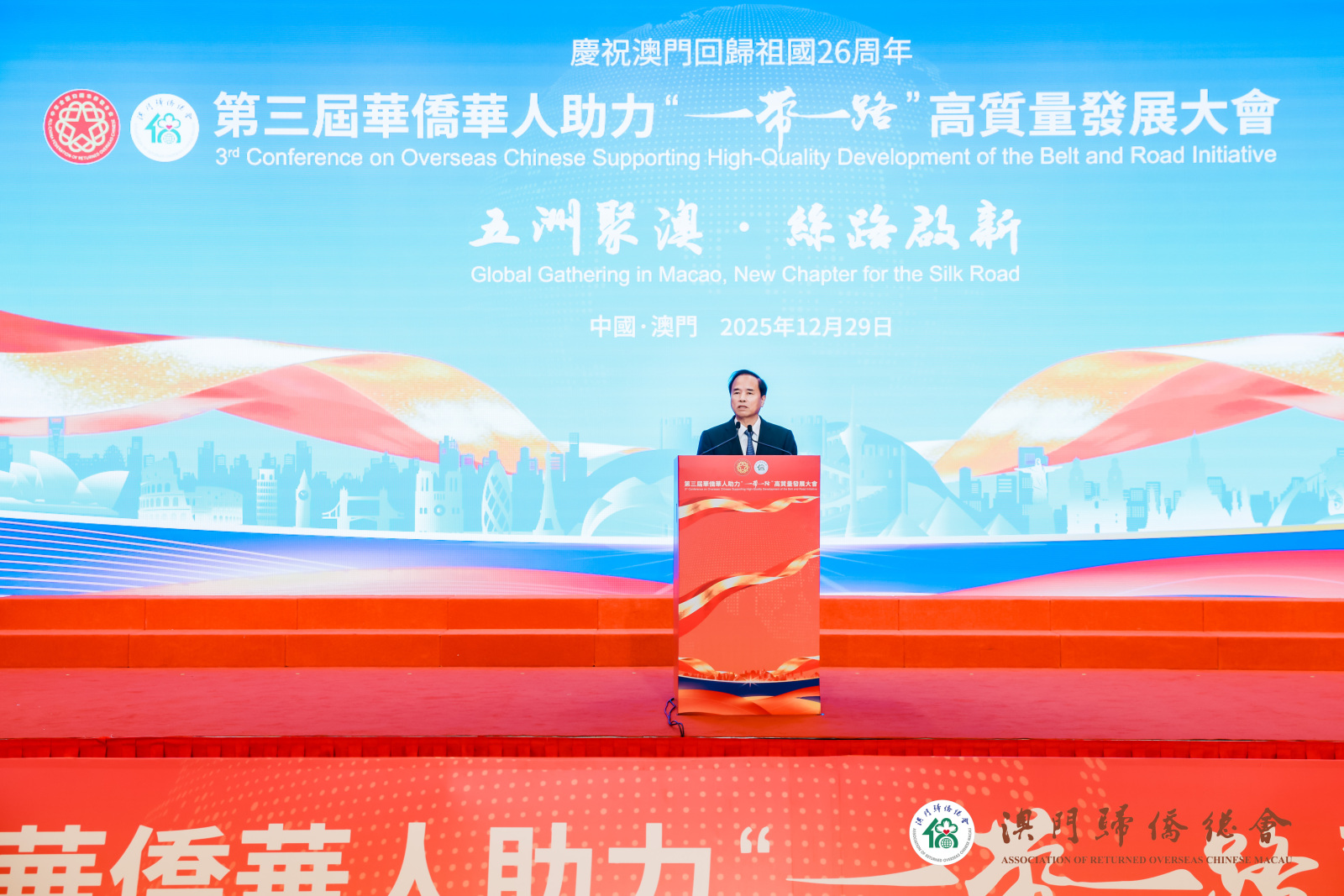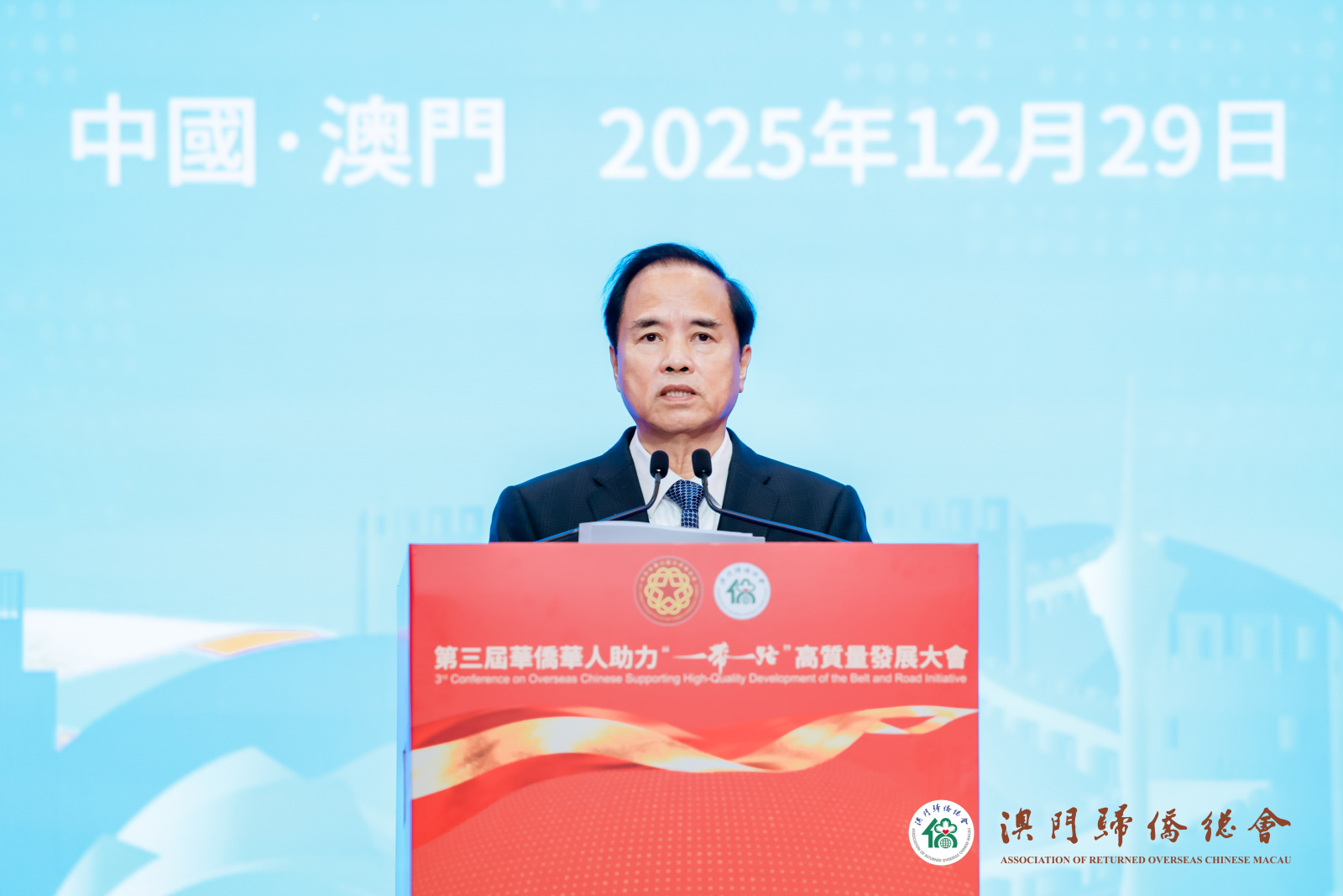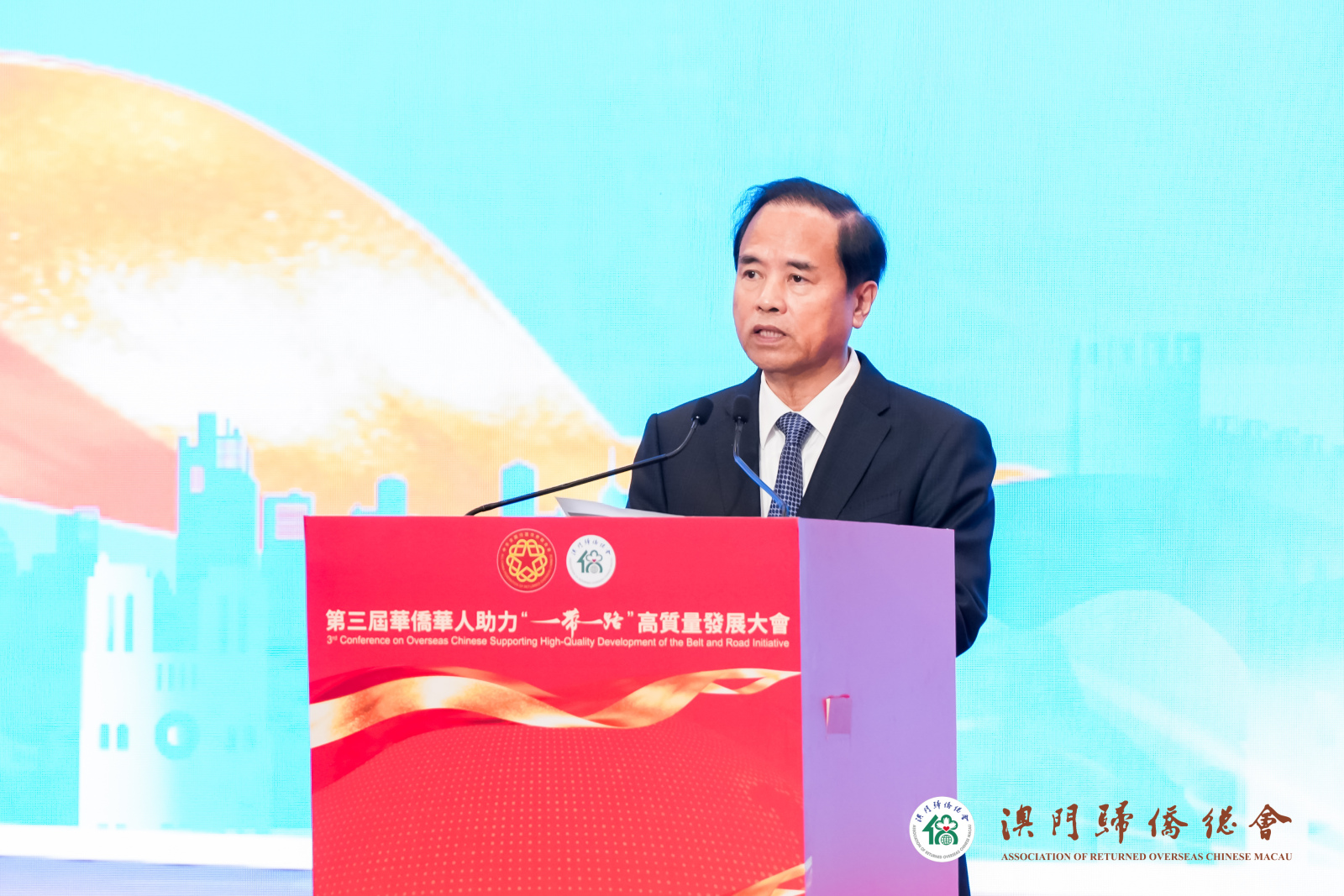 全國政協港澳台僑委員會主任劉賜貴致辭時對廣大華僑華人提出三點期望,一是把握發展機遇,做高質量共建“一帶一路”的踐行者;二是促進民心相通,做深化文明交流互鑒的傳播者;三是發揮獨特優勢,做助力澳門繁榮穩定的參與者。