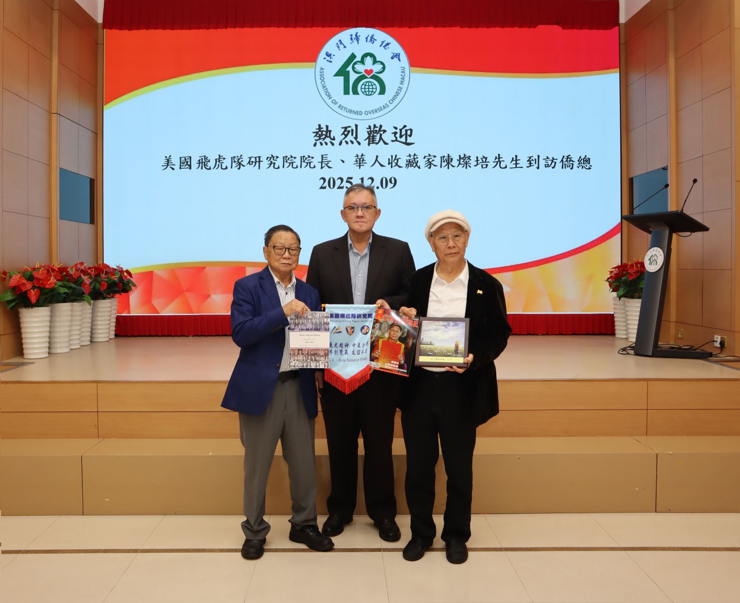 陳燦培在交流中提及,自己是澳門海外華僑,早年赴美發展並在專業領域耕耘多年,但始終心繫僑界發展,尤其關注飛虎隊與華僑歷史的保育工作。他分享其多年來在美國收集、整理及捐贈相關文物的成果與心得,強調飛虎隊不僅是中美並肩抗戰的歷史見證,更是海外華僑愛國奉獻的重要篇章。近年來,他積極推動文物回贈中國各地博物館,助力歷史記憶的傳承與教育。陳燦培亦特別提及,澳門在抗戰時期通過大規模募捐、轉運物資、抗日宣傳等多種形式,為支援國內抗戰事業作出了重要貢獻。