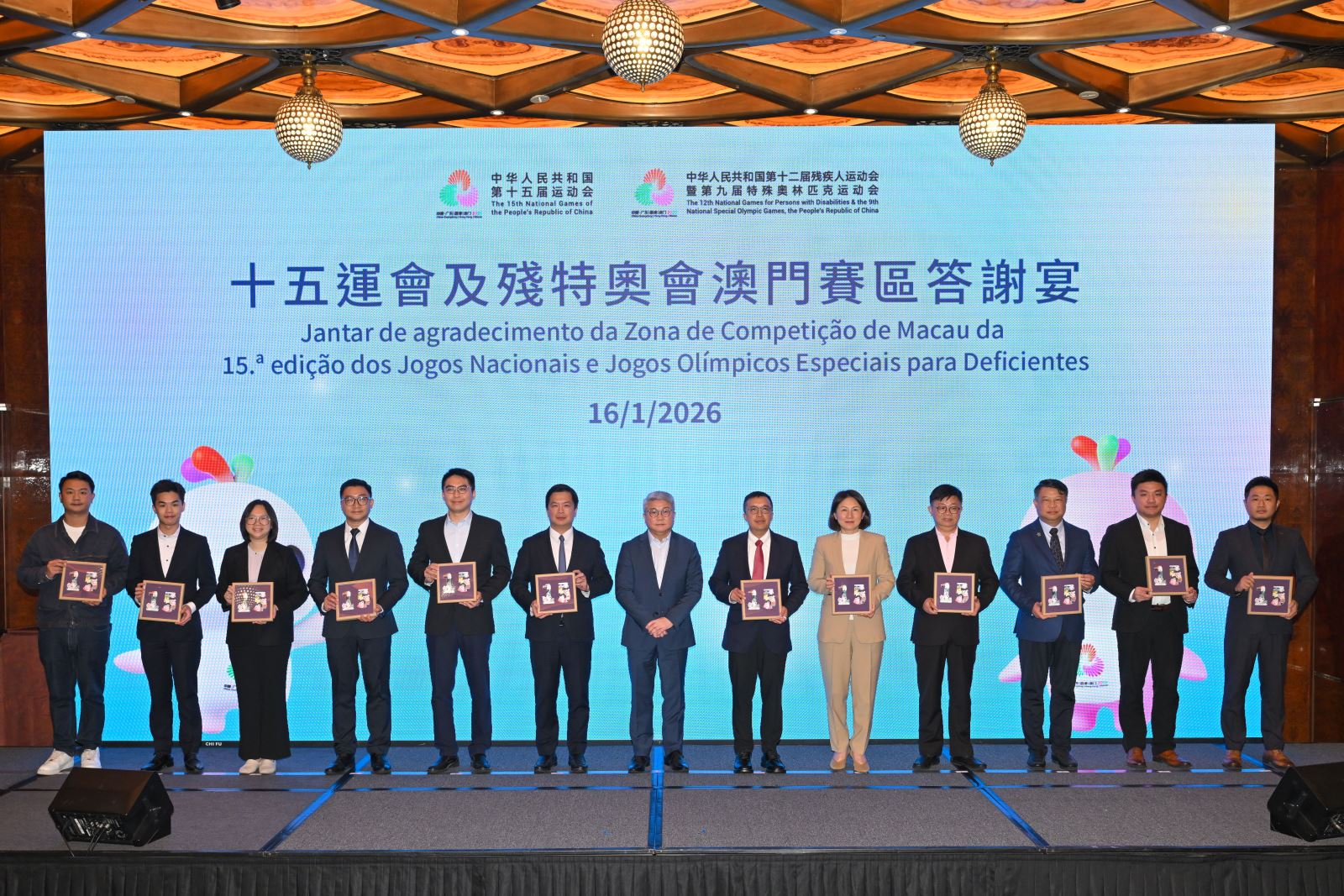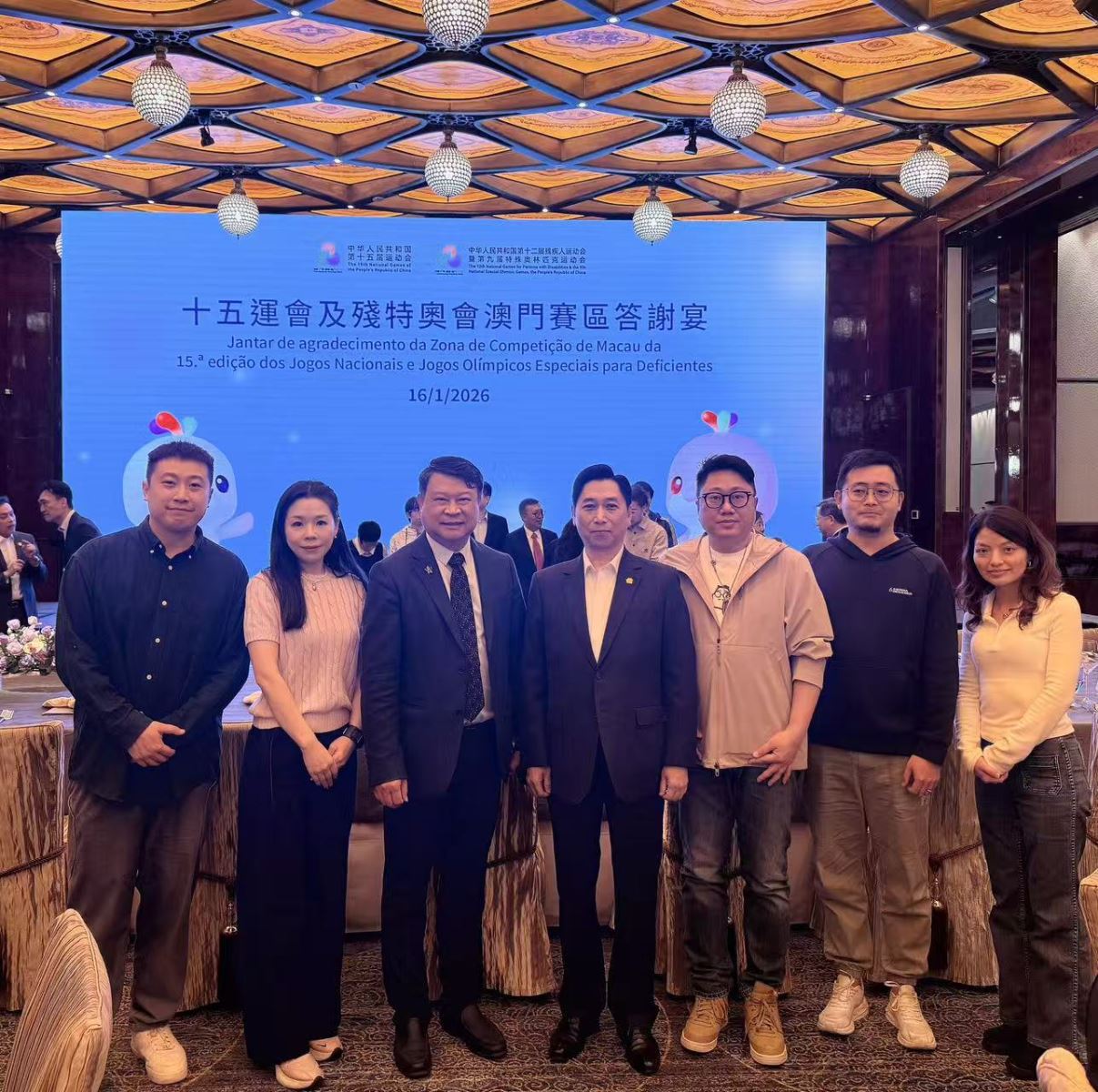 第十五屆全國運動會和全國第十二屆殘疾人運動會暨第九屆特殊奧林匹克運動會已於去年11月至12月順利舉辦。在澳門各界單位及人士的傾力支持與協作下,澳門賽區順利完成承辦任務 。2026年1月16日,主辦單位於澳門美高梅大宴會廳舉辦“十五運會及殘特奧會澳門賽區答謝宴”,澳門歸僑總會受邀出席,一同分享該份喜悅。