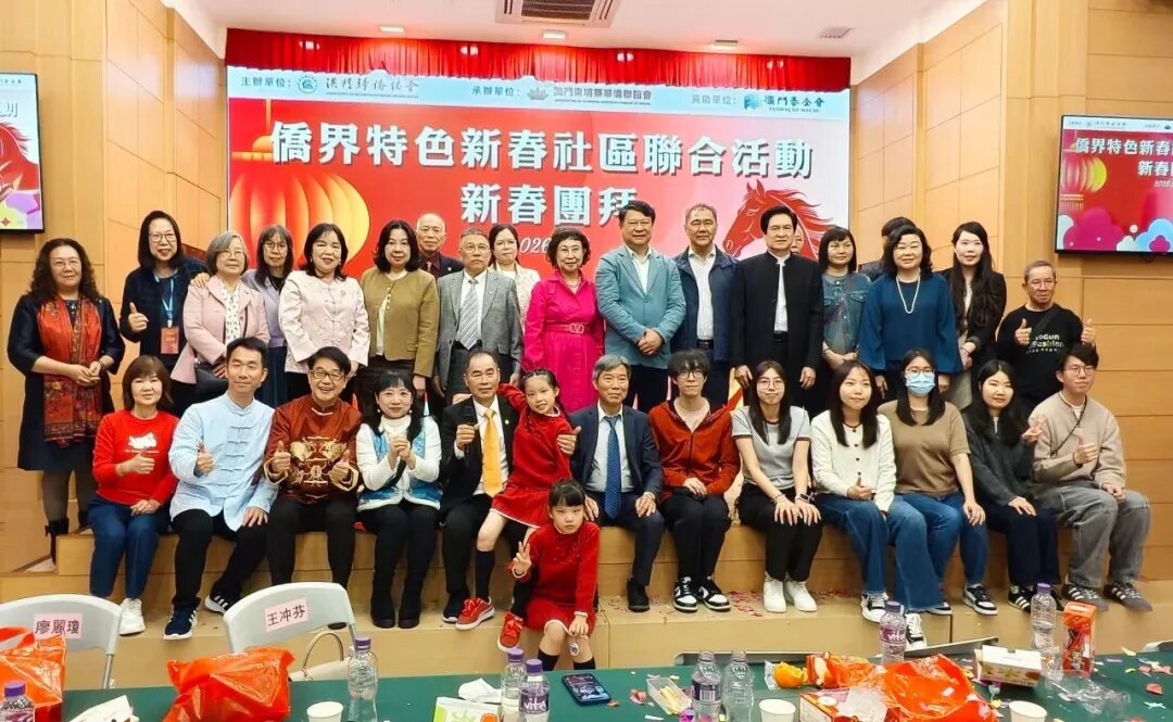 團拜現場安排了東南亞特色表演、聾人協會精彩手語表演及新春抽獎等環節,氣氛熱烈溫馨。出席者還有僑總副會長蘇慶輝、廖麗瓊、林文建、張華、蔡志龍、庾榮安、僑界青年協會理事長黎光豪、僑界婦女協會理事長吳茵娜、緬華筆友協會會長黃銓昌、大馬澳門商會會長趙文豪、柬埔寨華僑聯誼會名譽顧問羅兆、潘婉怡、副會長宋厚璋、黃華、副理事長胡燕群、劉少美。