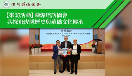 美國飛虎隊研究院院長、著名華人收藏家陳燦培於12月9日在澳門歸僑總會與澳門僑界代表進行深入交流,圍繞飛虎隊歷史文物保育、華僑貢獻研究等議題展開討論。本次會面由僑總副會長蘇慶輝主持,緬華筆友協會會長黃銓昌出席。