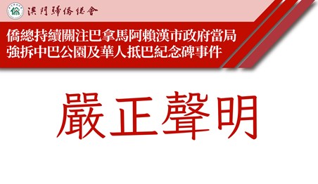 僑總持續關注巴拿馬阿賴漢市政府當局強拆中巴公園及華人抵巴紀念碑事件