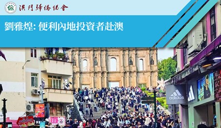 全國政協常委劉雅煌認為,目前內地投資者赴澳開展投資活動,日益多樣化,建議進一步便利內地投資者赴澳門開展業務,優化商務簽註制度,打開內地來澳投資的活水源頭。
