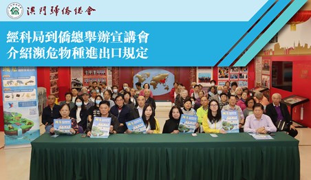 為持續做好《瀕危野生動植物種國際貿易公約》(CITES)和本澳第2/2017號法律《CITES執行法》的宣導工作,經濟及科技發展局(下稱“經科局”)在11月14日派員到澳門歸僑總會,向與會者介紹本澳關於瀕危野生動植物種的進出口規定。
