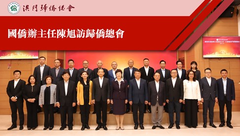 中央統戰部副部長、國務院僑務辦公室主任陳旭一行11月4日到訪澳門歸僑總會,受到會長劉雅煌、理事長畢志健、監事長王彬成等會領導熱情接待。劉雅煌感謝陳旭一行的到訪以及長期以來對僑總的關心和支持,並介紹僑總發展歷程,以及新一屆僑總近年在政治、經濟、文化、社會、青年傳承等方面發揮的積極作用。