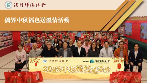 由澳門歸僑總會主辦的“2025年僑界中秋福包送溫情”派發儀式於9月27日在僑總禮堂舉行,分批向逾七百名受惠長者會員及有需要人士派贈福包,紓緩生活壓力,部分行動不便人士由僑總安排工作人員親自上門派福包,弘揚澳門社會守望互助的優良傳統。是次活動由澳門基金會贊助。