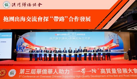 由中華全國歸國華僑聯合會、澳門歸僑總會主辦的“第三屆華僑華人助力‘一帶一路’高質量發展大會”於 12月29日下午3時假澳門旅遊塔會展娛樂中心舉行。來自全球81個國家和地區的僑領齊聚濠江,共商“一帶一路”高質量發展。