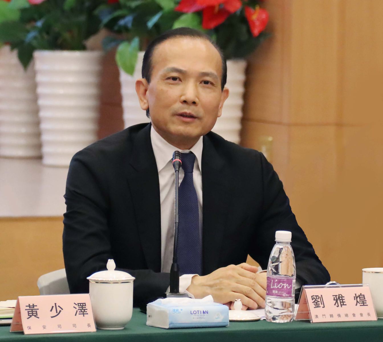 參與座談的還有警察總局局長梁文昌、海關關長何浩瀚、保安司司長辦公室代主任曾翔、消防局局長梁毓森、司法警察局局長薛仲明、治安警察局局長吳錦華,以及澳門歸僑總會多名副會長和副理事長等。