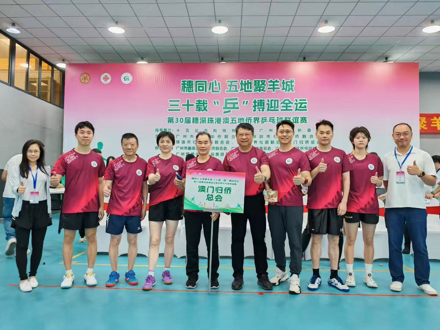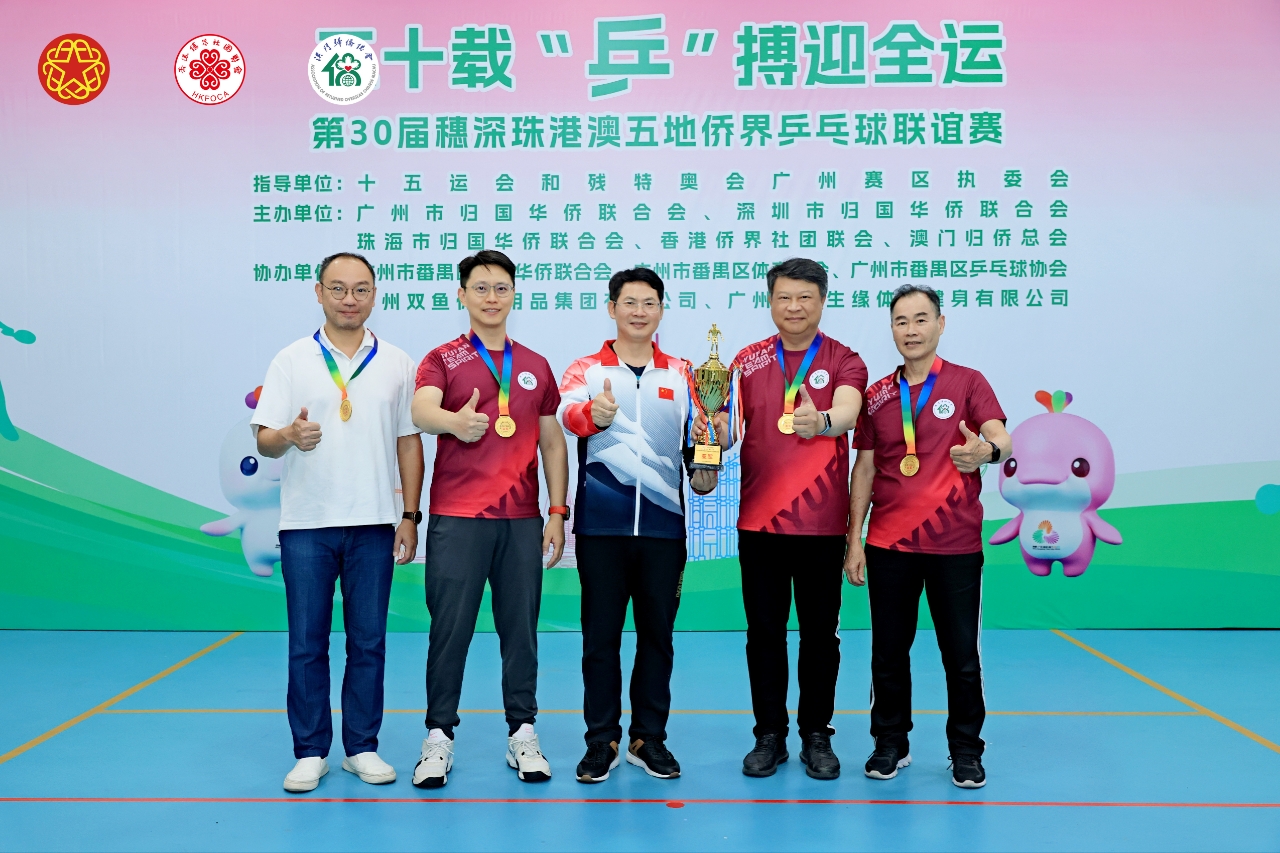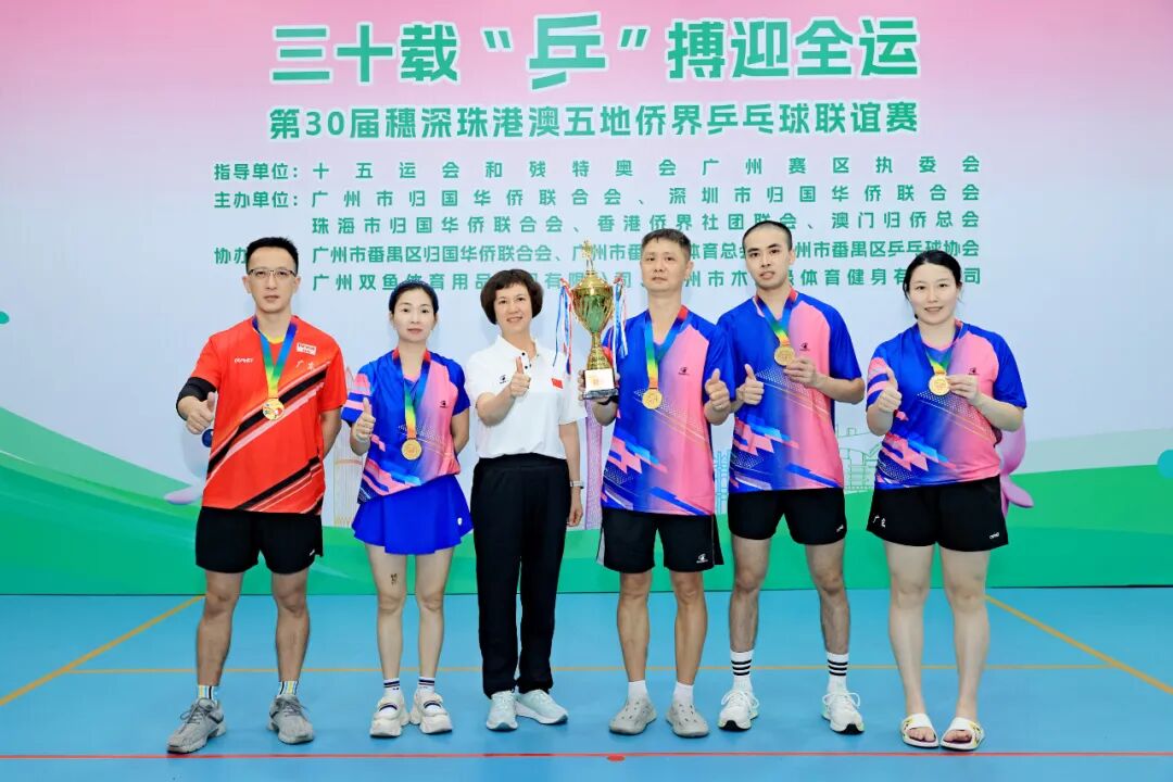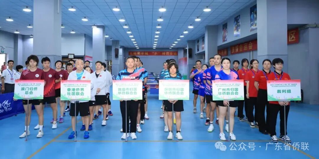 为喜迎第十五届全国运动会,促进粤港澳大湾区侨界交流合作,2025年9月5-7日,由十五运会和残特奥会广州赛区执委会指导,广州市侨联、深圳市侨联、珠海市侨联、香港侨界社团联会、澳门归侨总会共同举办,广州市侨联承办的“穗同心,五地聚羊城;三十载,‘乒’搏迎全运”——第30届穗深珠港澳五地侨界乒乓球联谊赛在番禺区乒乓球协会球馆举行,来自五地侨界的乒乓球运动员和裁判员100多人热情参与。广州市侨联党组书记、主席卞勇,十五运会和残特奥会广州赛区执委会联络部副部长梁佩珍,广州市侨联党组成员、副主席李妙娟,广州市番禺区委常委、区委办公室主任石巍,深圳市委统战部侨联工作部一级调研员李家繁,珠海市侨联主席张英龙,香港侨界社团联会常务副会长兼秘书长廖宇轩,香港侨界社团联会常务副会长骆镇,澳门归侨总会理事长毕志健,2025年广州国际体育嘉年华传播大使、广州新侨联谊会经贸委员会秘书长李凯伦等出席比赛开幕式。