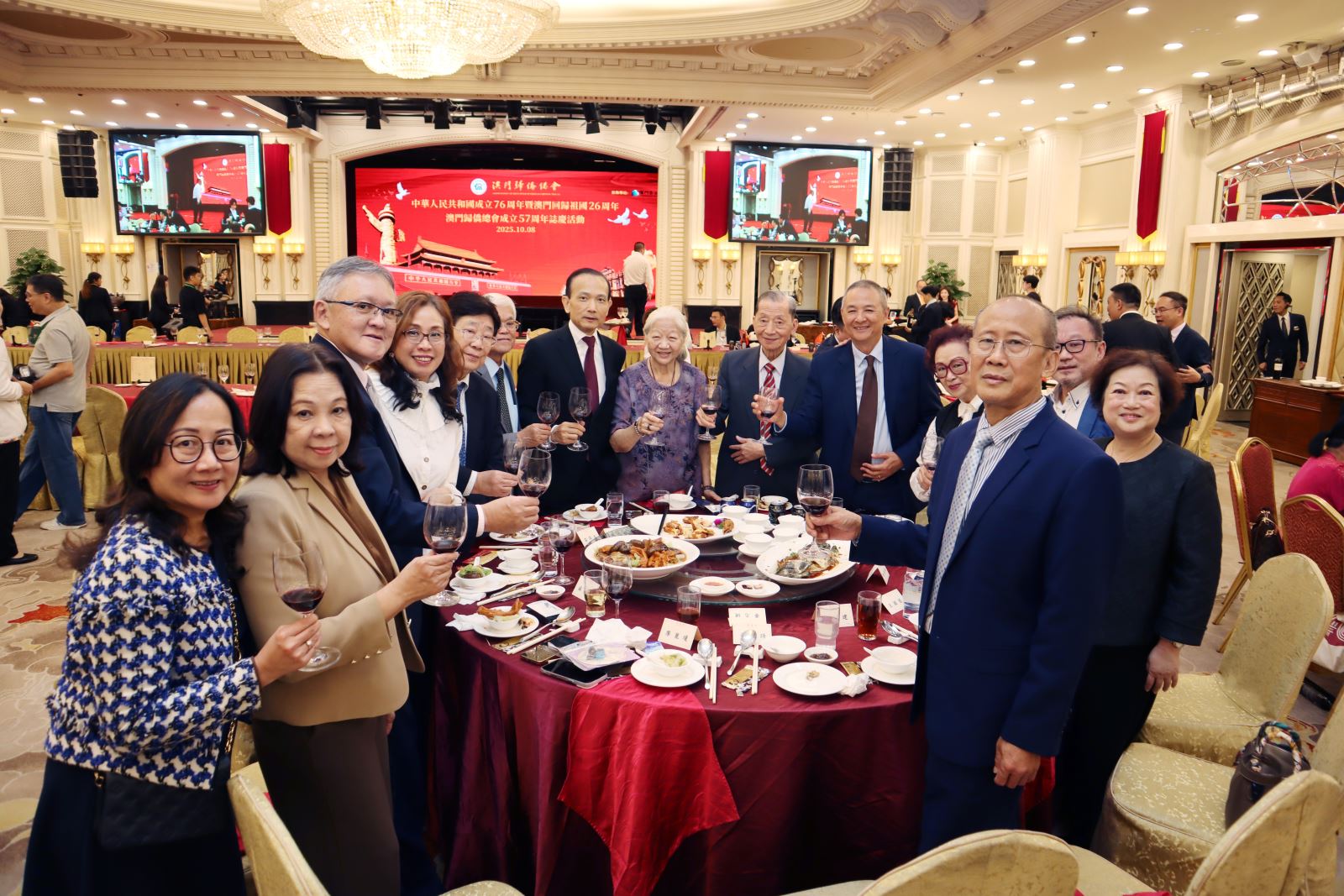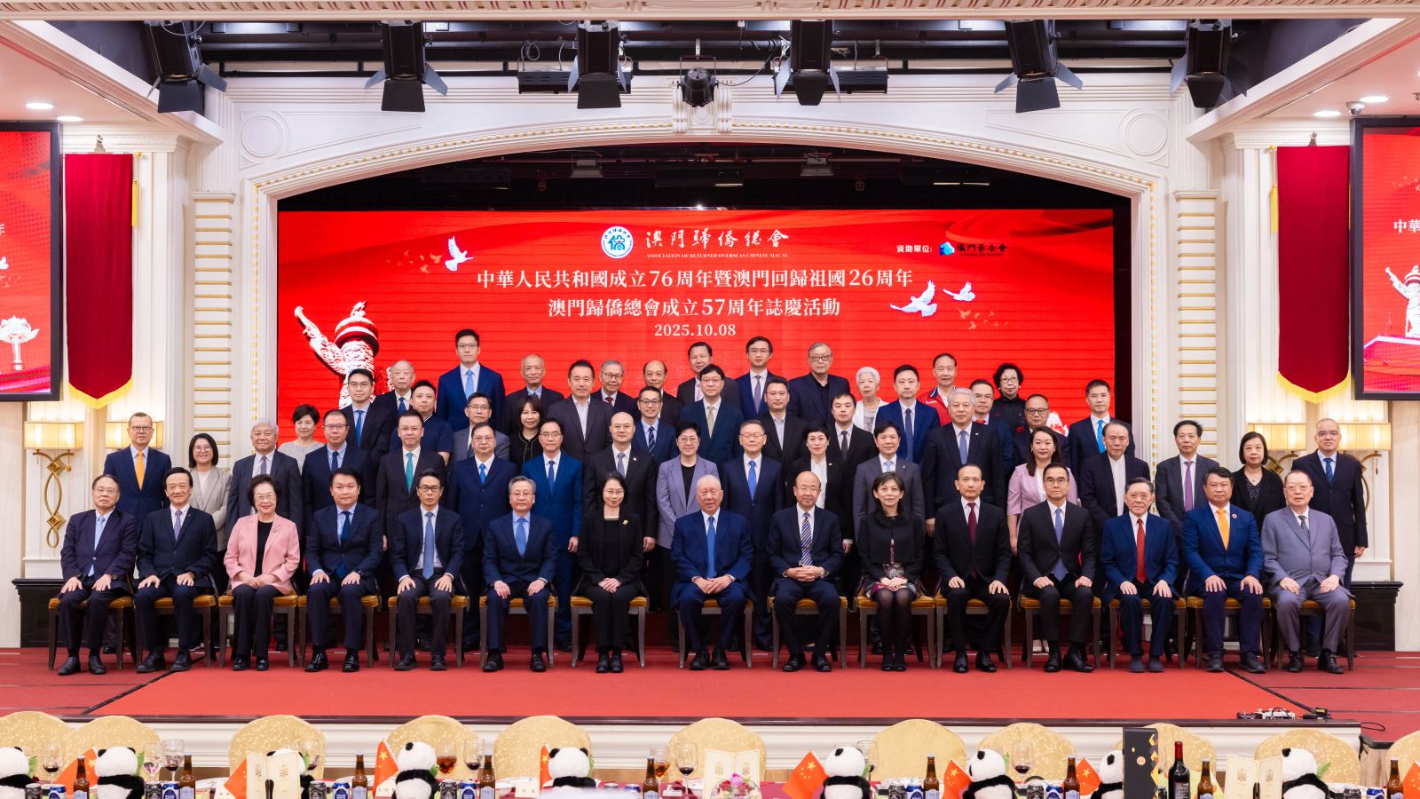 澳門歸僑總會舉行慶祝中華人民共和國成立七十六周年、澳門回歸祖國二十六周年暨僑總成立五十七周年聯歡晚宴,筵開五十餘席。全國政協副主席何厚鏵,外交部駐澳特派員公署特派員劉顯法,行政長官代表、社會文化司司長柯嵐等出席,各界嘉賓同申慶祝,場面熱鬧。