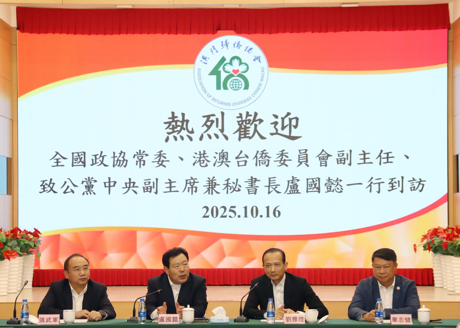 劉雅煌感謝盧國懿常委一行來訪。他表示,今年是國家“十五五”規劃謀篇佈局之年,澳門新一屆特區政府在岑浩輝行政長官帶領下開拓了良政善治的新局面。僑總作為愛國愛澳的一面鮮明旗幟,未來將着力構建“文化共融、信息传播、出海服務、两岸融合”四大功能網絡,助力澳門打造成為中國香港以外另一雙向開放國際大通道。期望在全國政協、致公黨的大力支持下,致力向世界講好“一國兩制”成功實踐的澳門新故事。