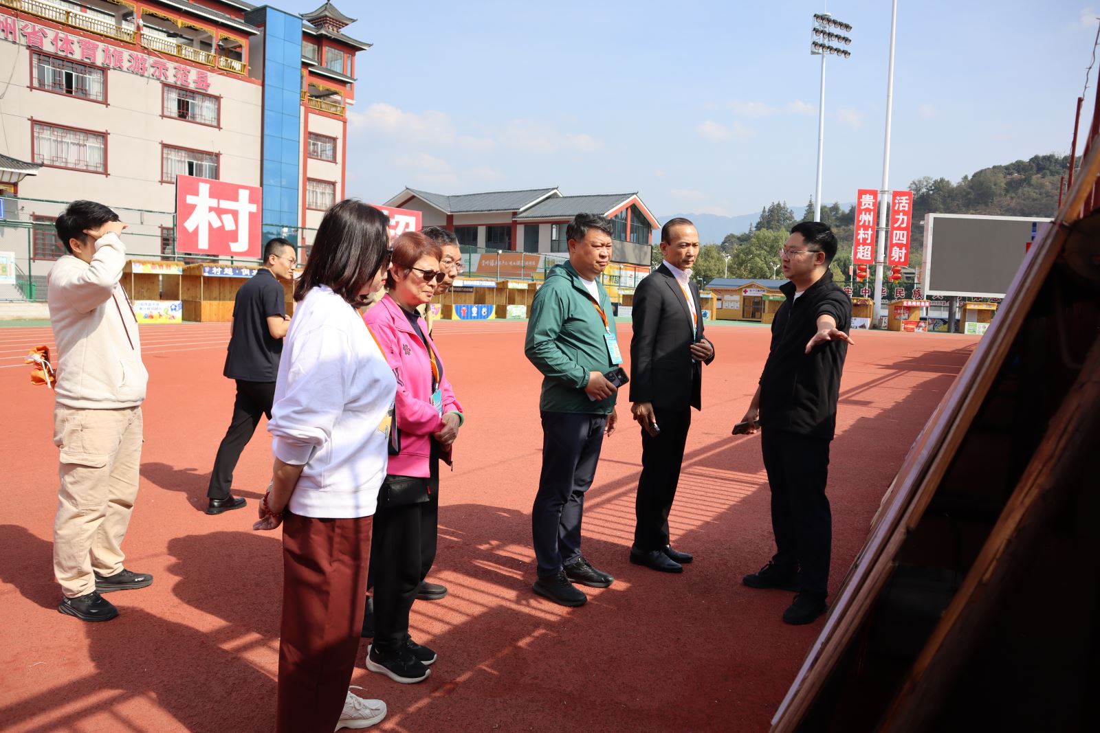 考察期間,考察團在“村超” 傳播負責人王永傑陪同下實地察看 “村超” 賽場及周邊情況。今年貴州遭遇洪水侵襲,“村超” 球場及周邊設施受損,賽事一度暫停。在各方支援下,當地民眾齊心協力開展清淤修復工作,僅用一個月便完成場地重建並 “村超” 順利重啟,充分展現了強大凝聚力與復蘇韌性。考察團成員對洪災後 “村超” 快速恢復的成效表示讚賞,認為其蘊含的團結奮進精神與文旅帶動價值值得深度挖掘。