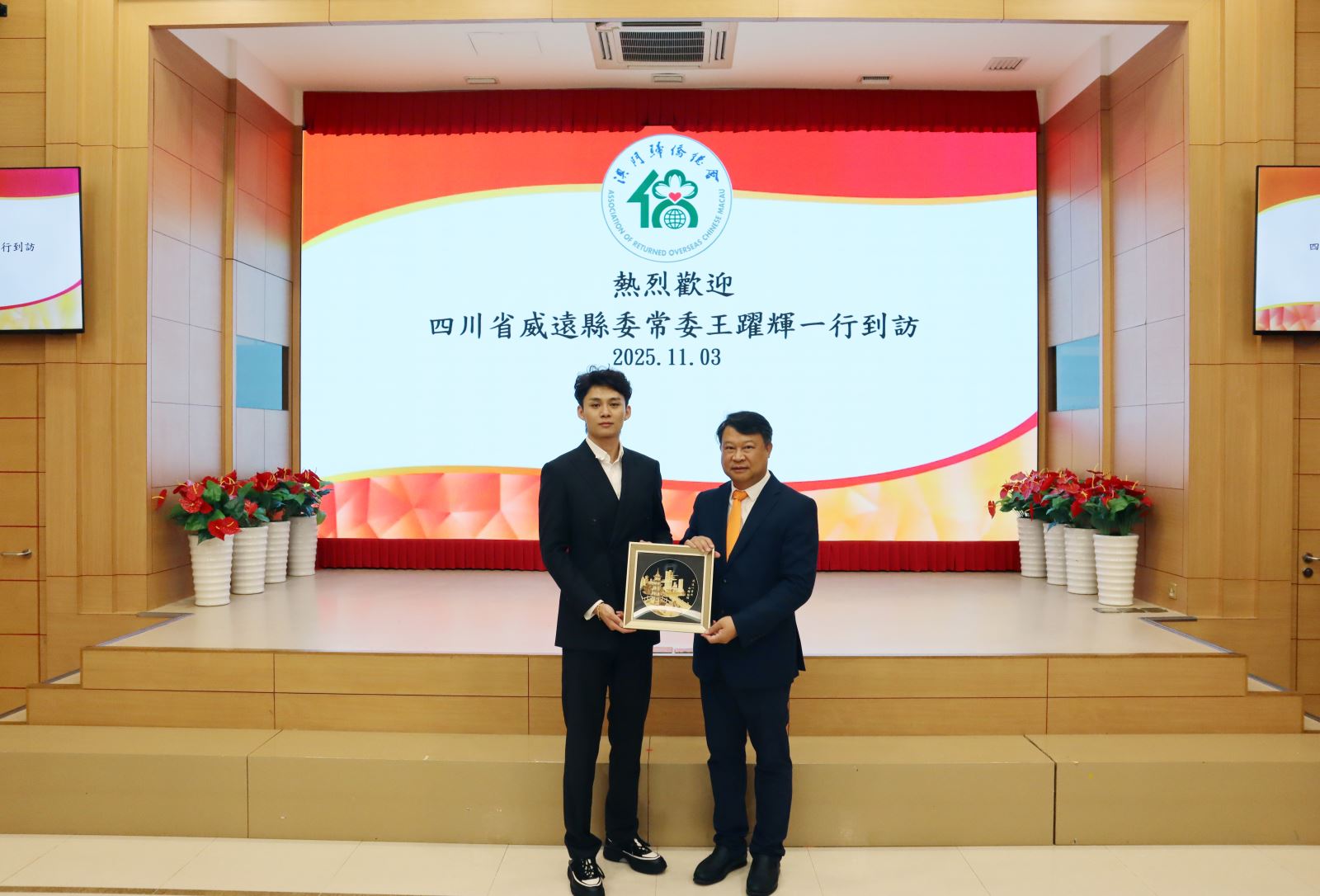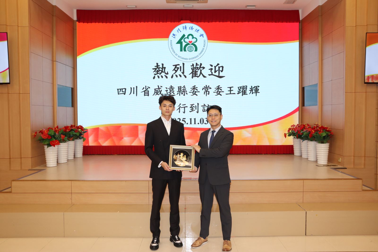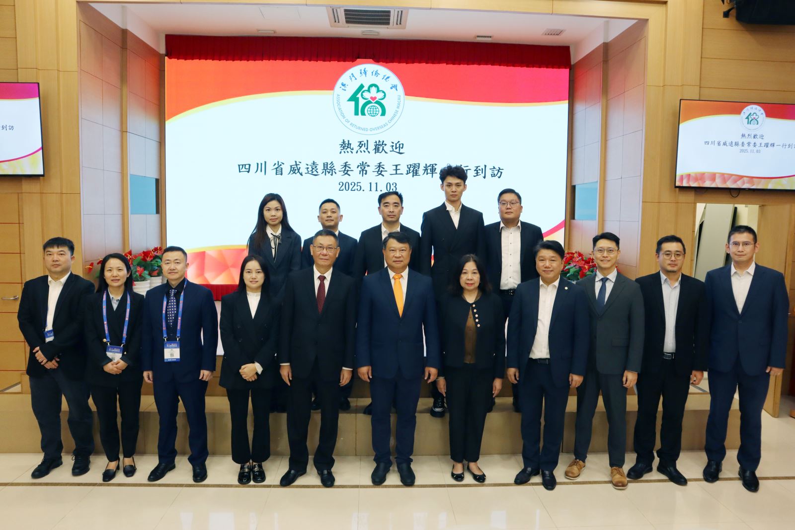 四川省威遠縣常委王躍輝、威遠縣僑聯主席李秀等一行於2025年11月3日到訪澳門歸僑總會,獲僑總理事長畢志健、副會長廖麗瓊、僑青理事長黎光豪等領導熱情接待,座談會由僑青常務副會長林僑慶主持。會上,威遠縣與僑青簽署友好合作協議,標誌著兩地合作邁入新階段,為川澳僑界深化聯動夯實基礎。