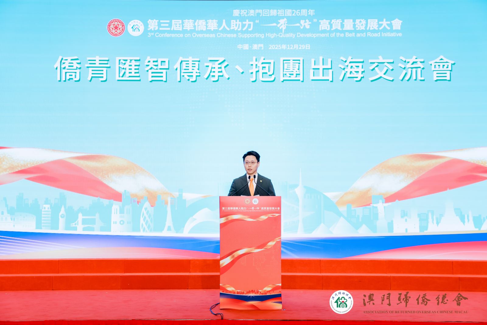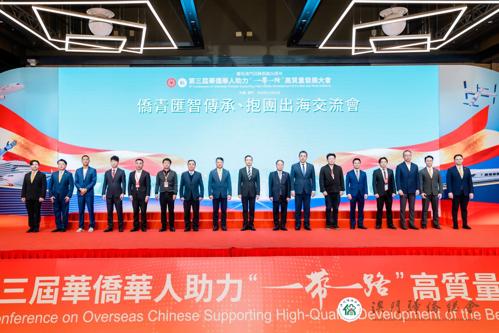 第三屆華僑華人助力“一帶一路”高質量發展大會12月29日假旅遊塔四樓舉行,同場舉辦“僑青匯智傳承、抱團出海交流會”,匯聚本地、內地及海外僑界青年代表,共同探討新時代背景下“一帶一路”合作與發展路徑。