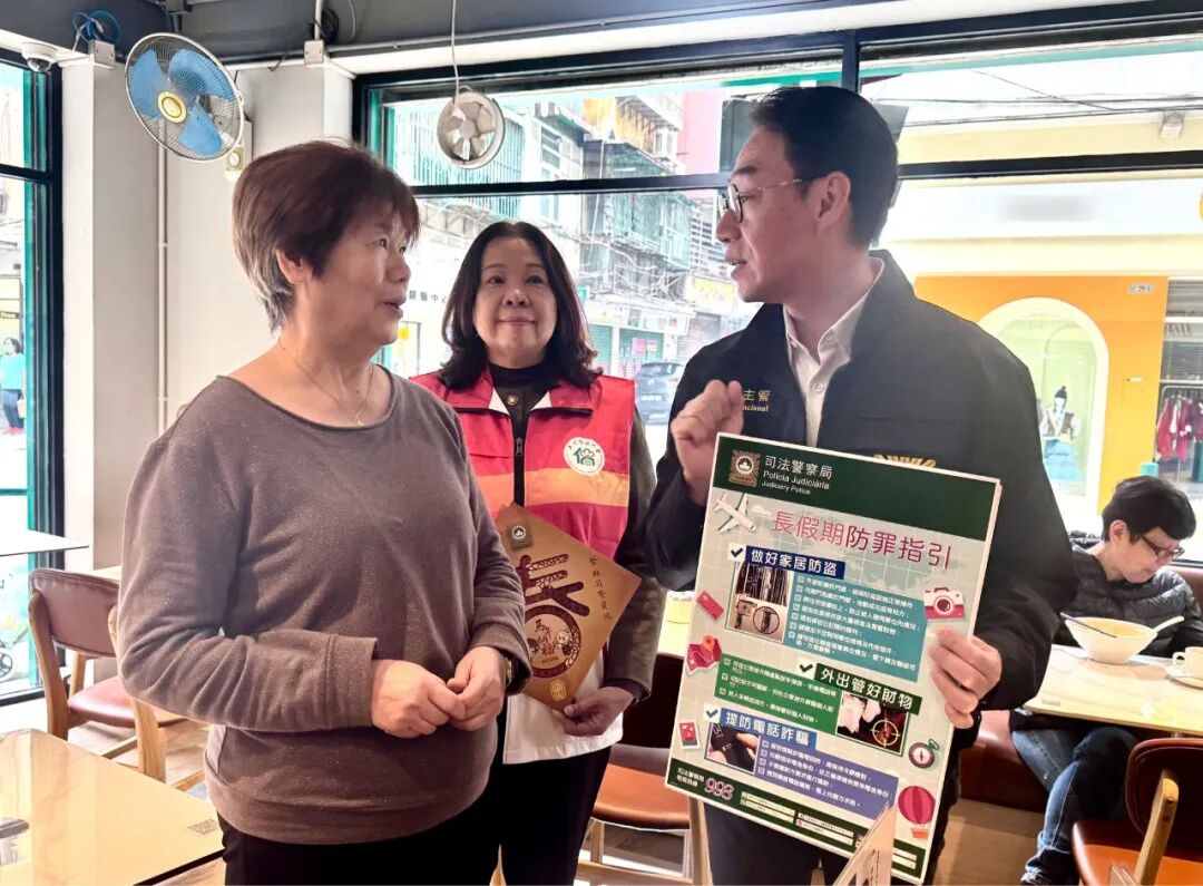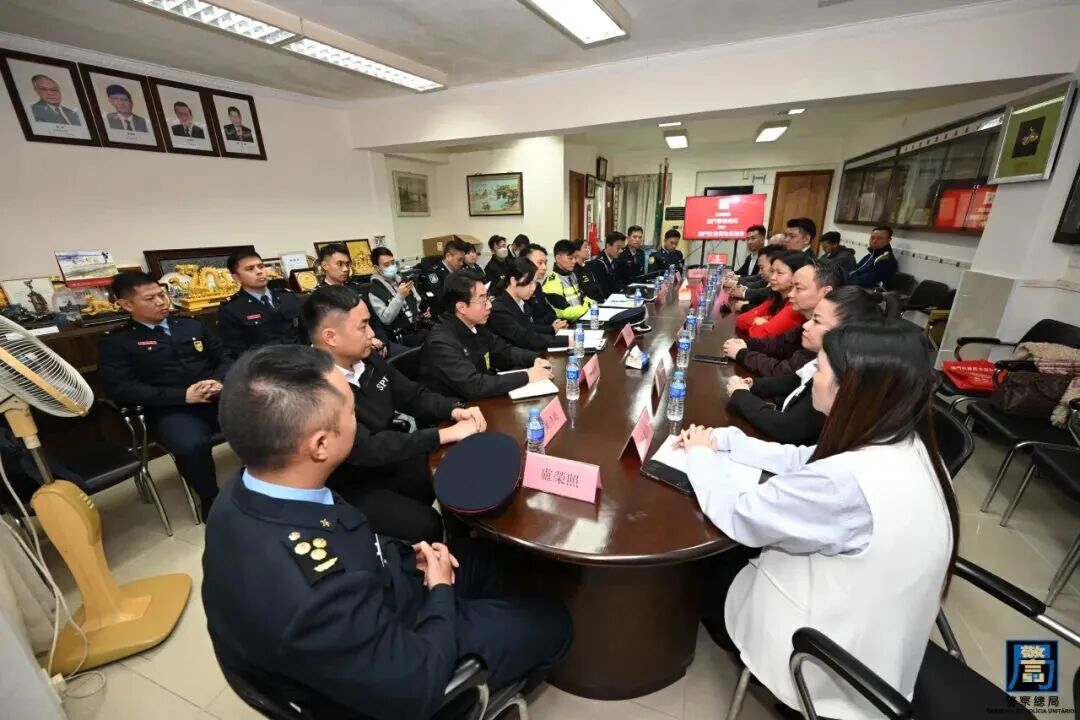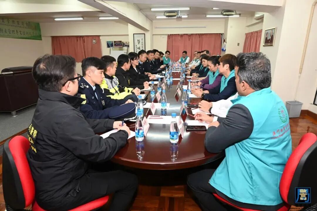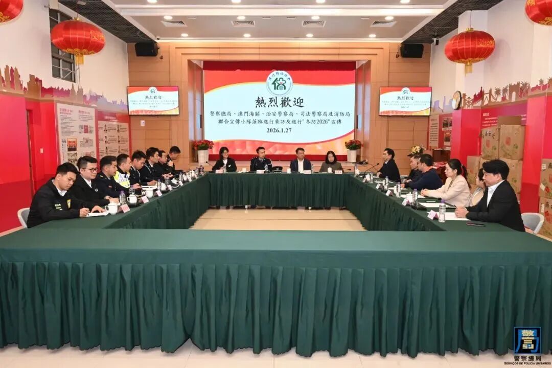 年近歲晚,為確保障社會治安穩定,警察總局統籌及協調澳門海關、治安警察局、司法警察局及消防局,組成聯合宣傳小隊,開展一系列社區防罪宣傳活動,期間走訪多個社團機構進行交流,藉以優化冬防工作各項部署。