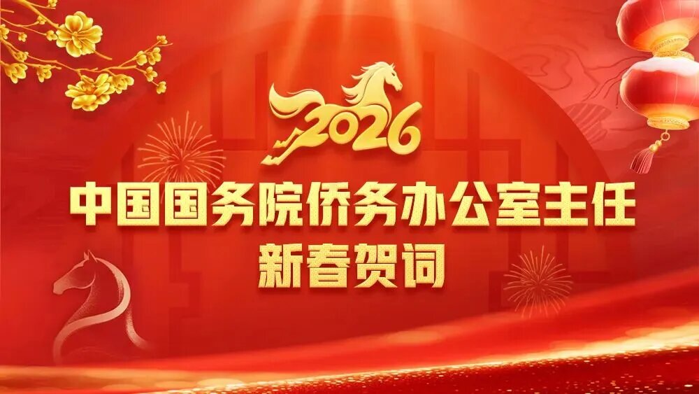 刚刚过去的2025年,我们隆重纪念中国人民抗日战争暨世界反法西斯战争胜利80周年,激励中华儿女铭记历史、珍爱和平;我们胜利召开中国共产党二十届四中全会,系统擘画未来五年发展蓝图,奋力开创中国式现代化建设新局面。这一年,“十四五”规划圆满收官,中国经济跃上新台阶,改革开放迈出新步伐,高质量发展活力勃发;机器人领跑新质生产力,人工智能创造美好生活,科技创新赋能强劲;西夏陵为世界遗产再添瑰宝,多国免签政策广迎天下宾朋,中国潮玩、动画火爆全球,持续书写中国奇迹崭新篇章。长期以来,广大海外侨胞和归侨侨眷始终与祖(籍)国风雨同舟、命运与共,在新时代新征程上,更是勠力同心,为推动高质量发展、弘扬中华优秀文化、促进中外友好合作作出了重要贡献。在此,我要向关心、支持祖(籍)国发展的广大海外侨胞和归侨侨眷致以崇高敬意和衷心感谢!过去一年,国务院侨办会同各涉侨部门,持续做好各项暖侨惠侨工作,提供更加高效便利的服务,加强联系慰问和关怀救助;支持侨胞办好华文教育,举办丰富多彩的节庆活动,传承弘扬中华优秀传统文化;支持侨胞深度参与共建“一带一路”倡议和创新驱动发展战略,将自身事业发展融入中国式现代化伟大进程。2026年是“十五五”开局之年。我们将继续坚持“以人为本,为侨服务”宗旨,全面贯彻落实侨务政策,竭诚深化为侨服务,共同画好海内外中华儿女最大同心圆,凝聚起中华民族伟大复兴的磅礴伟力。我诚挚地邀请侨胞们常回家看看,饱览祖(籍)国锦绣山河,感受各地风土人情和时代新貌,看看贺兰山下、滇藏线旁,不仅有塞上江南、雪山峡谷的壮丽奇观,更有各民族团结进步、中华民族一家亲的生动景象;洞庭湖畔、寒山寺外,不仅有烟波浩渺、枫桥乌啼的四时风光,更有寻常百姓多姿多彩、烟火升腾的生活气息。也希望侨胞们以多种方式向住在国亲朋好友、各界人士,讲讲美丽中国、家乡的故事,让世界更了解中国、了解中华民族,助力中外文化文明交流互鉴。侨胞们,朋友们,在中华传统文化中,马代表着奋发向上、活力充沛、勇敢进取。正如习近平主席所说,让我们拿出跃马扬鞭的勇气,激发万马奔腾的活力,保持马不停蹄的干劲,一起为梦想奋斗、为幸福打拼,把宏伟愿景变成美好现实。衷心祝愿大家在新的一年阖家幸福、万事如意、龙马精神、马到成功!给大家拜年了!