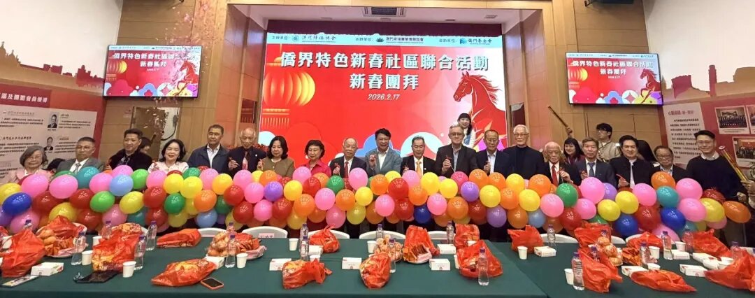丙午年大年初一上午十時,由澳門歸僑總會、柬埔寨華僑聯誼會聯合舉辦的僑界特色新春社區聯合活動之新春團拜於僑總禮堂舉行,僑總理事長畢志健、常務副會長邱漢榮、柬埔寨華僑聯誼會理事長王冲芬、團體會代表及會員朋友逾二百名成員歡聚一堂,共慶馬年新歲,現場暖意融融、喜氣洋洋。