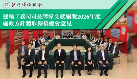 運輸工務司司長譚偉文一行於10月15日到訪澳門歸僑總會並舉行座談,聽取本會就運輸工務範疇2026年度施政工作提出的意見和建議,獲會長劉雅煌、理事長畢志健等的熱情接待。