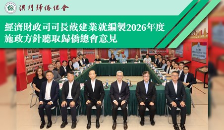 經濟財政司司長戴建業一行於10月15日到訪歸僑總會並舉行座談,聽取本會對經濟財政範疇2026年度施政方針的意見和建議,獲會長劉雅煌、理事長畢志健等的熱情接待。
