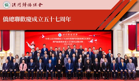 澳門歸僑總會舉行慶祝中華人民共和國成立七十六周年、澳門回歸祖國二十六周年暨僑總成立五十七周年聯歡晚宴,筵開五十餘席。全國政協副主席何厚鏵,外交部駐澳特派員公署特派員劉顯法,行政長官代表、社會文化司司長柯嵐等出席,各界嘉賓同申慶祝,場面熱鬧。